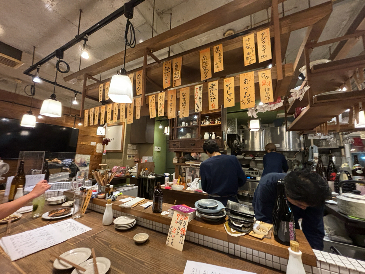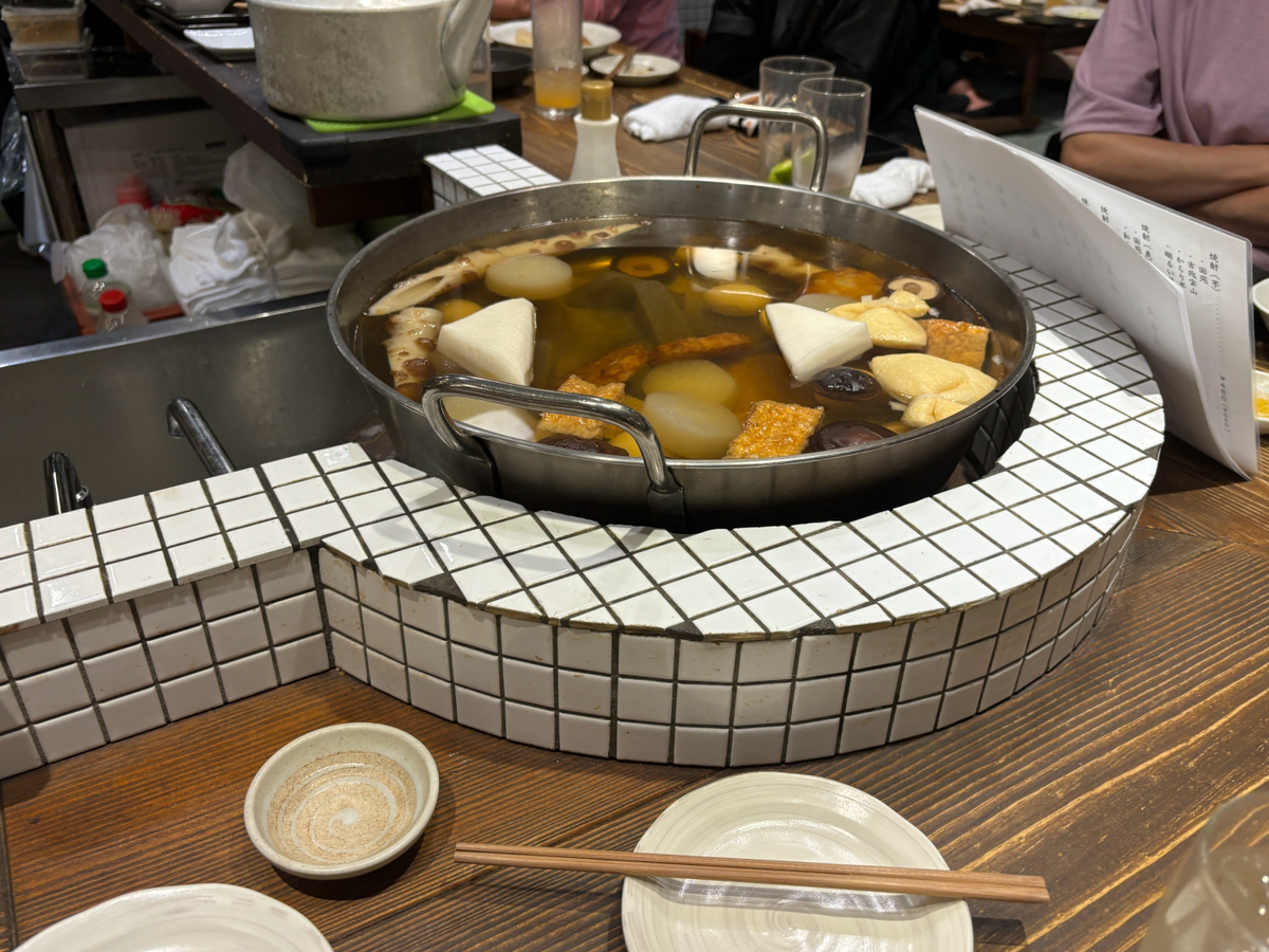 夏でもおでんが美味しい居酒屋です。 日本人ならおでんです。 おでんのお任せ5品は800円。 とりあえずおでんでお酒を楽しみましょう♪ 本日の日本酒のお品書きもありまして日本各地の美味しい日本酒を堪能できます。