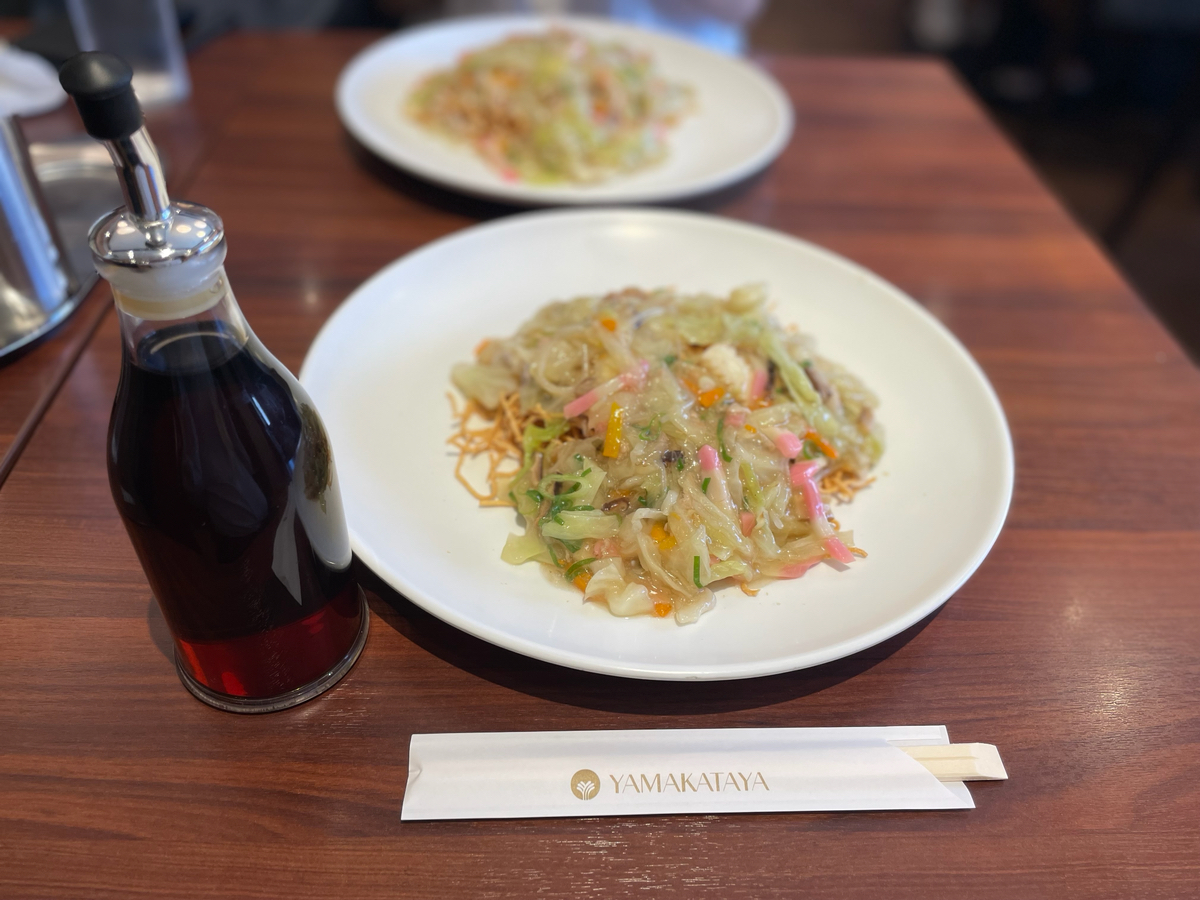 鹿児島の老舗デパート山形屋の7階に山形屋食堂があります。 メニューは色々ありますが、やはり1番のおすすめは「焼そば」です。 皆様が想像する焼そばと違い、揚げめんに野菜たっぷりの餡がのっているものとなります。ボリュームたっぷりですが、備え付けの三杯酢をかければペロリと食べれます。😋 休日は並ぶ事必須ですが、是非ご賞味下さい。