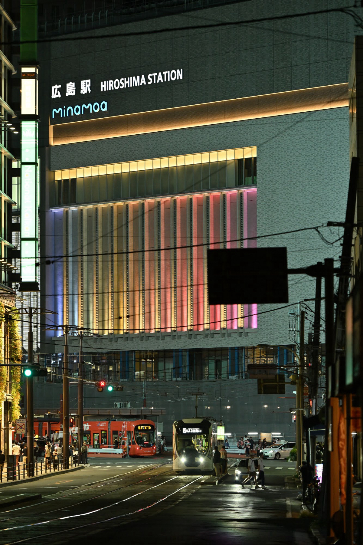 前回投稿した的場町−猿猴橋町間の荒神三叉路三角地帯から広島駅のライトアップを撮影しました