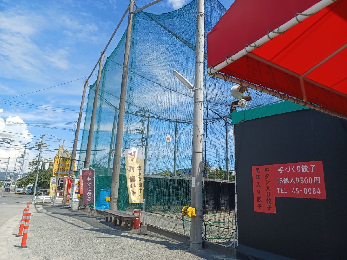 『餃子屋』 JR天和駅からすぐの所に小さなバッティングセンターがあります。 そこで持ち帰り餃子も販売しているんですよ~。 餃子は生タイプで、味は黒豚入り、牛タン入りの二種類。 店主の“シンチャン”が手作りした餃子だそうです。 小ぶりですが、にらがたっぷり入っていて、肉はふんわり食感。 軽くパクパク食べれました。 打ちっぱなしで汗を流したあとは、餃子でスタミナ回復もよいですね。