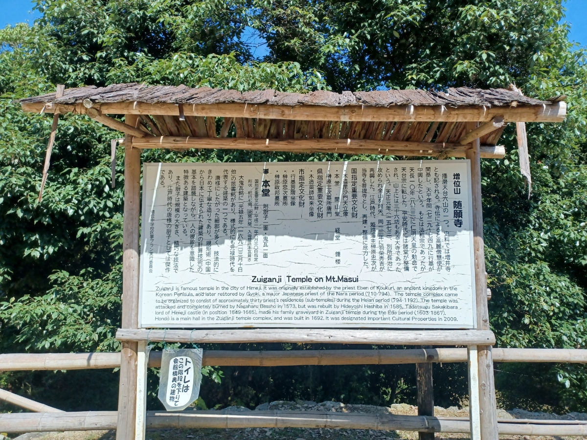 『増位山 随願寺』 奈良時代の創建と伝わる天台宗寺院で、 ご本尊は薬師如来像。 江戸時代には姫路藩主榊原家の菩提寺となり、境内には立派な墓所もあります。 本堂、経蔵、開山堂は国指定重要文化財に指定されており、毎年2月11日に行われる修正会鬼追い式(追儺会)は700年以上の歴史があります。 随願寺のある増位山自然公園はハイキングコースになっているので、自然を楽しみながら参拝するのも楽しいですね。