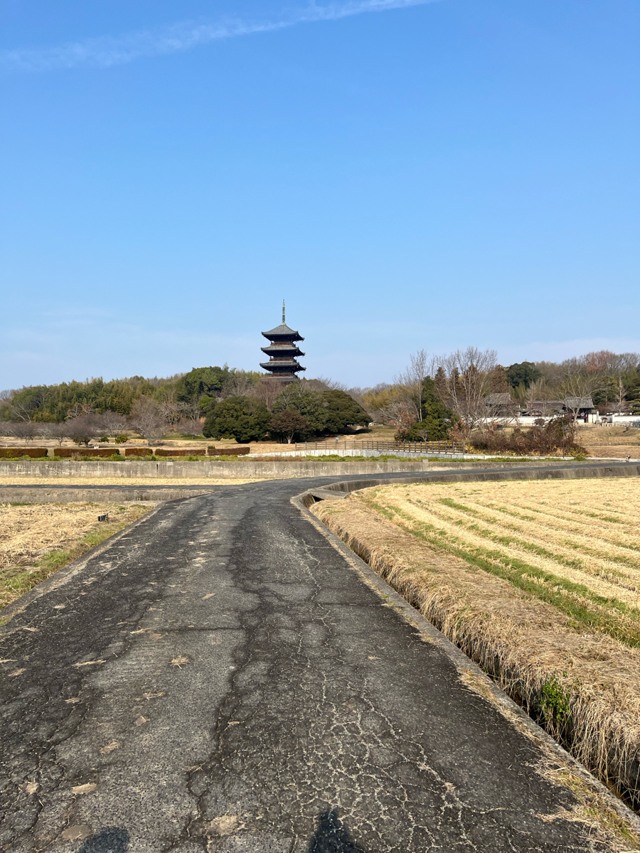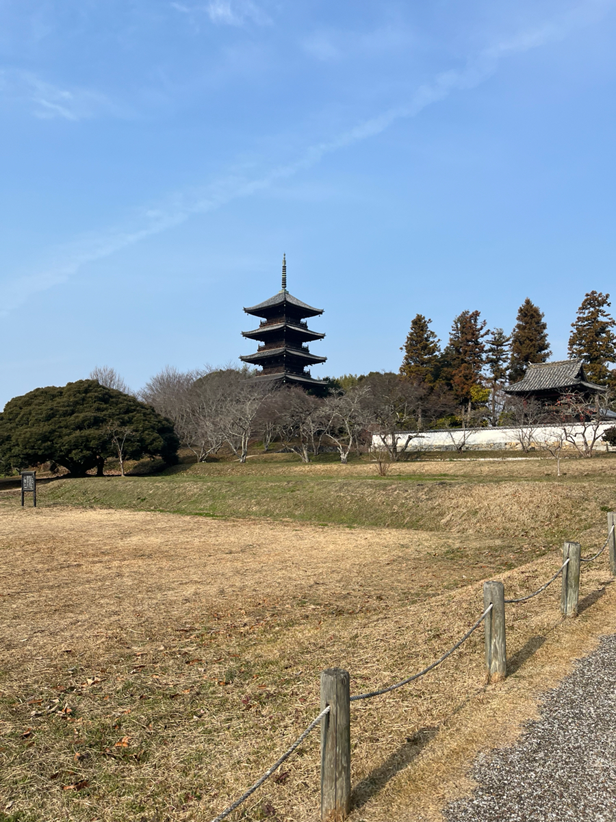 私が昔絵に描いた五重の塔とおなじ構図で写真を撮ってきた 12月末は人も少なくて写真に人が映らないから風景だけを撮りたい人におすすめ