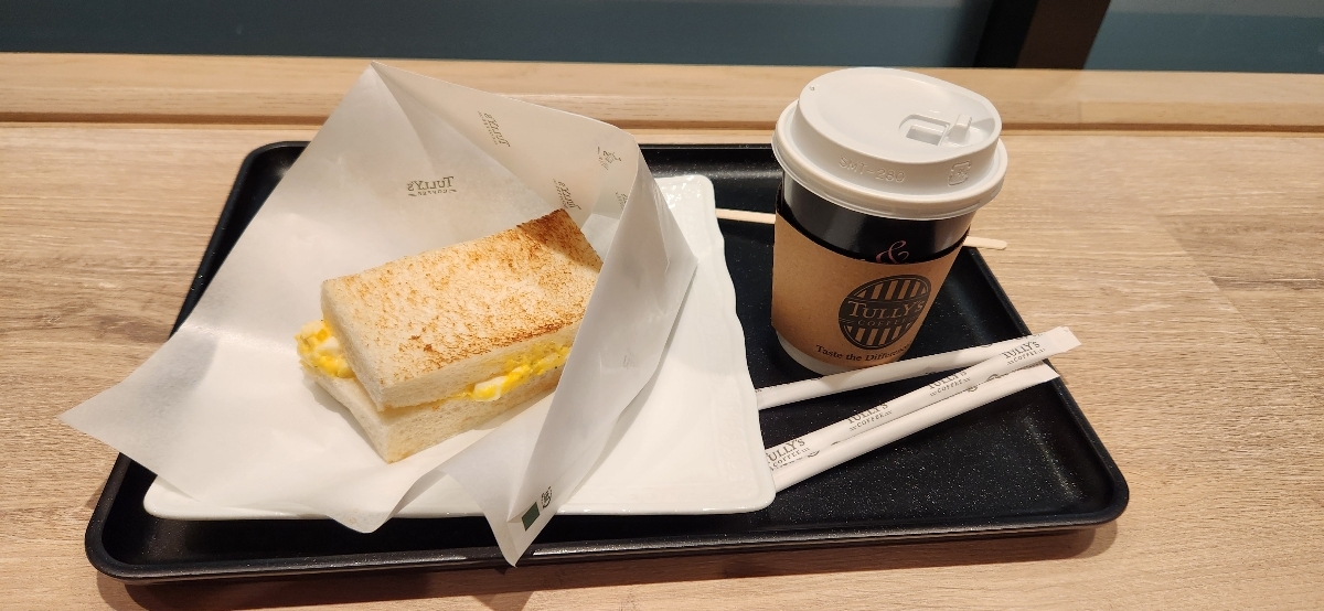 ダリーズコーヒー&TEAホワイティ梅田店のたまごサンドとコーヒーを注文しました。値段は、650円です。初めてお店に来ました。美味しいです。