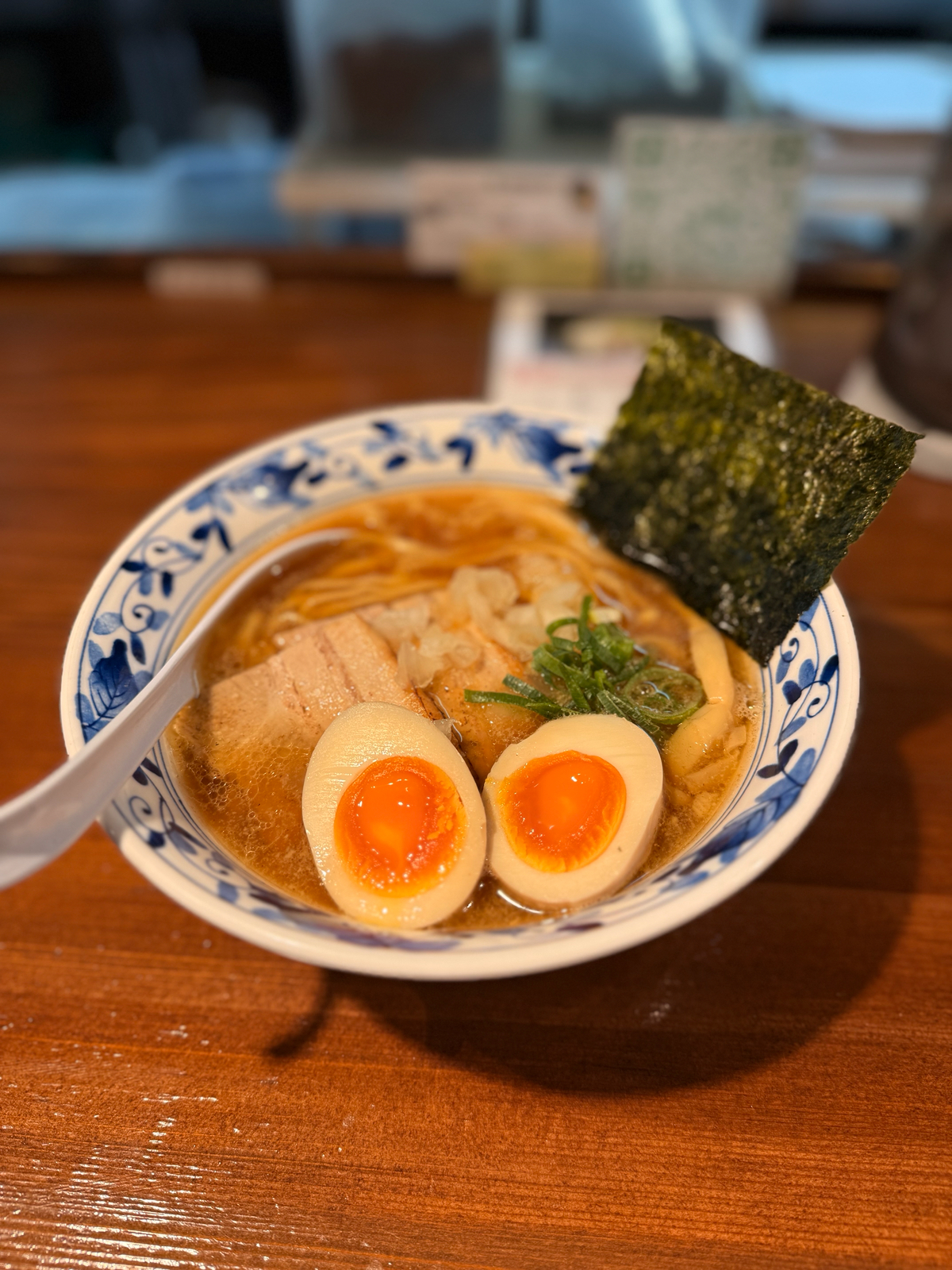 本日は焼きあご味玉付き中華そばをいただきました🍜