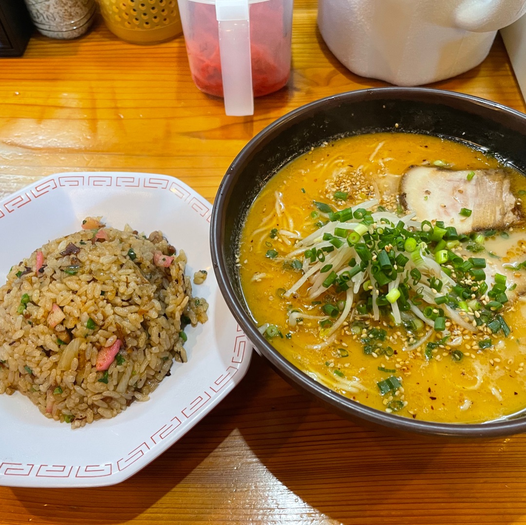 国道3号線沿いのラーメン店に入店🍜 ラーメンは鹿児島ラーメンぽくなく、 ガツンと塩味のある豚骨ラーメンでした。 セットで頼んだ焼きめしも、味濃ゆ目で美味でした😋