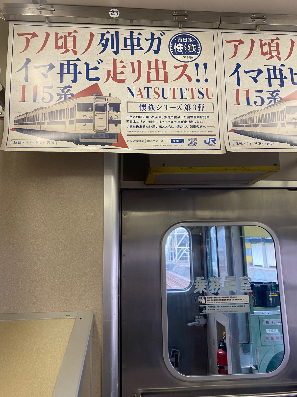 こんにちは、marinです。瀬戸内海をイメージしたこの配色の車両は、1982年から2015年まで山口県内などのJR山陽線を走っていたそうです。運良く乗車できました🎵