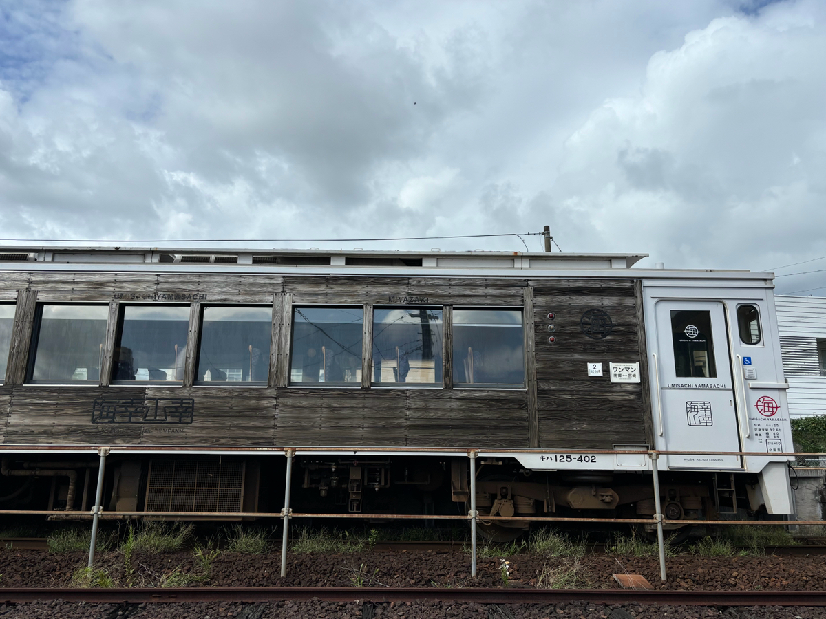 宮崎県日南市は西武ライオンズのキャンプ地です。 南郷駅も南郷スタジアムもライオンズ仕様です🏟️ 南郷駅にはちょうど「海幸山幸」が止まっていました。