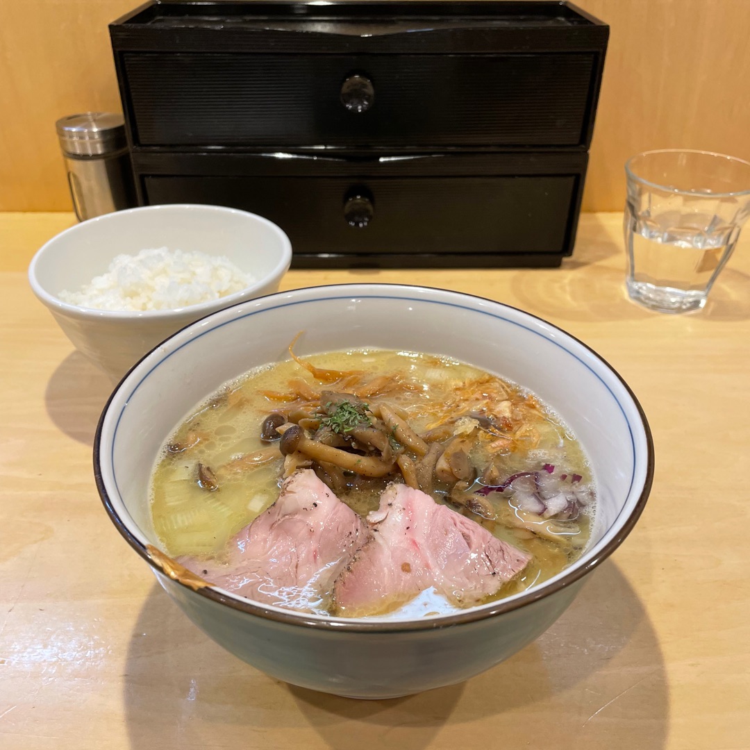 秋季限定、きのこ好きにはたまらないラーメンです。オススメされるままにごはん(150円)もオーダーして、最後はちょっと洋風な?きのこ雑炊にしていただきました!