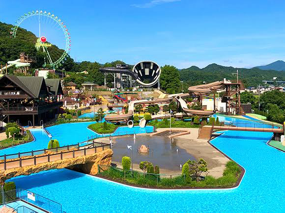 Nより90分+🚎35分。 冬季は休み。他、季節や混雑時期により、1Dayパスポートの価格が大きく異なる。 たくさんのプールやスライダーが楽しめる夏のレジャープール。