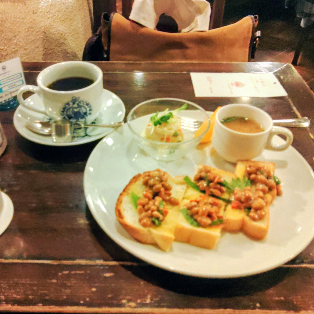 トーストに納豆(大葉を添えて)。エスプレッソのカップには味噌汁。しっかりお腹に入れて朝の原動力になりました。