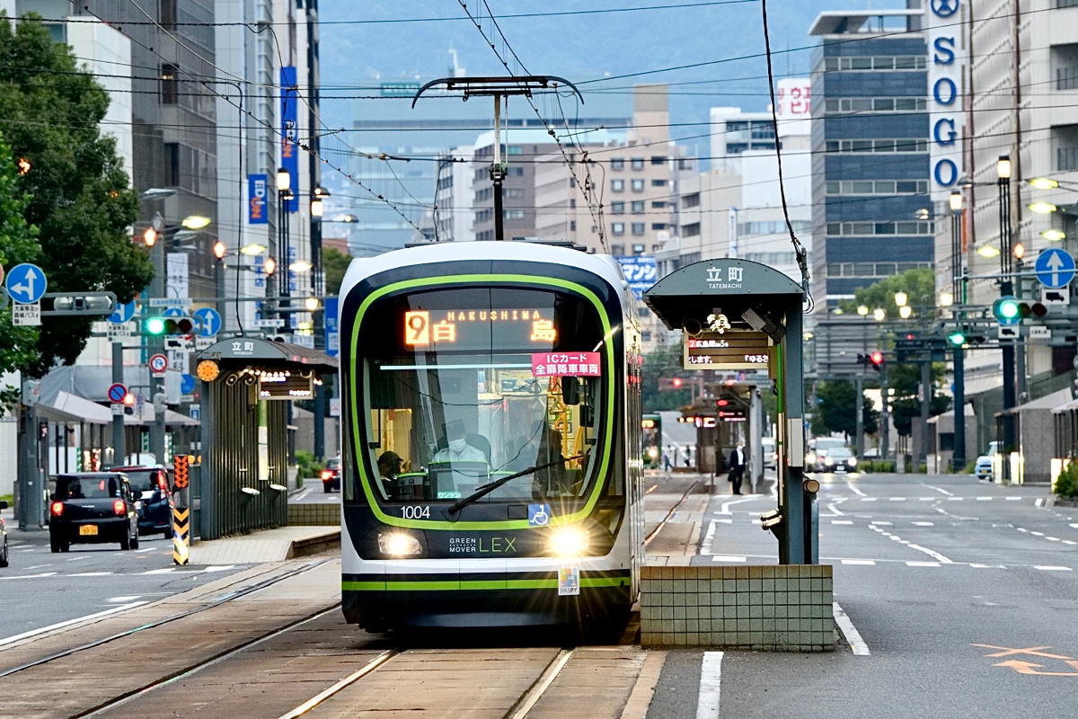 朝と夜、1日2便 江波と白島を直接結ぶ便があります (1900形の行き先表示には『原爆ドーム・紙屋町』と入ってます)