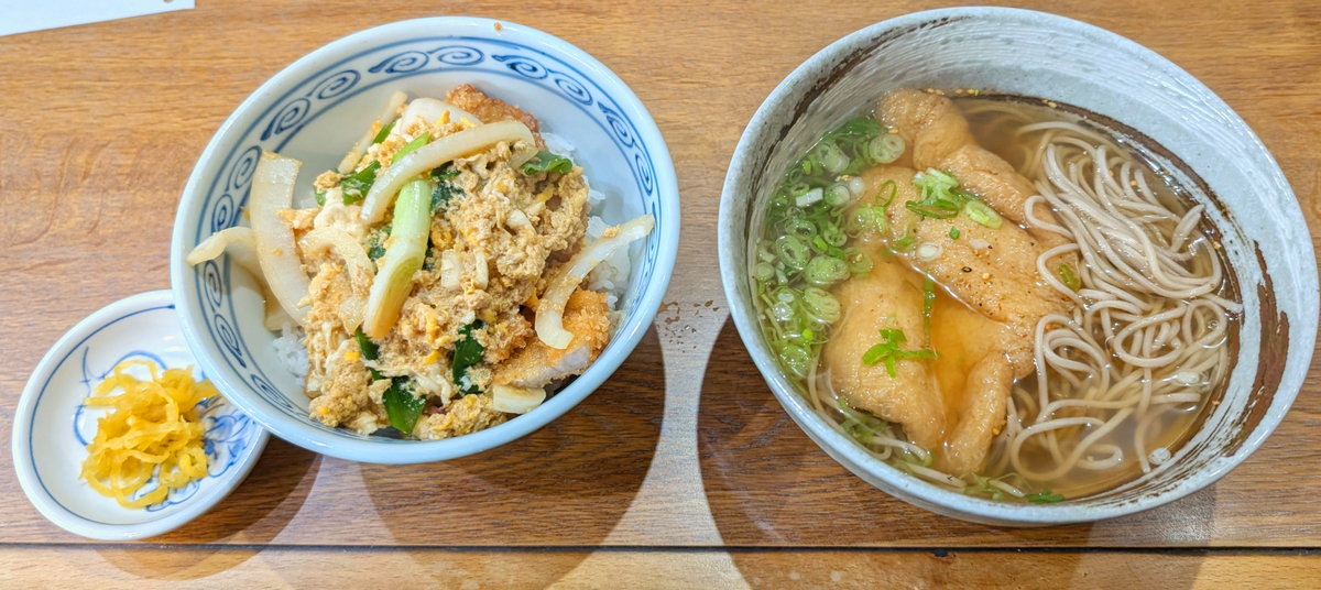 とても素朴な感じの定食屋さん。 今回は、カツ丼定食をオーダーしました。 カツ丼と、フルサイズのあったかい蕎麦で、大満足でした。