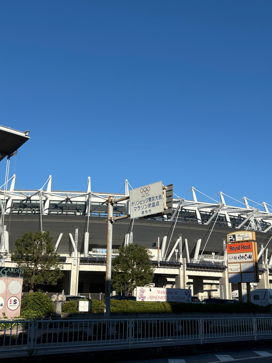 味の素スタジアムはFC東京の本拠地として、多くの人の熱気に包まれる場所です⚽️ 最寄りの飛田給駅には選手のポスターが並び、街全体からチーム愛を感じられます。 試合の日は、隣駅の西調布駅まで声援が聞こえることもあります! FC東京カラーである赤と青を身につけて、調布の一体感を感じてみてください⚽️ (試合がない日は、スポーツ大会、コンサート、フリーマーケットなどが開催されています)