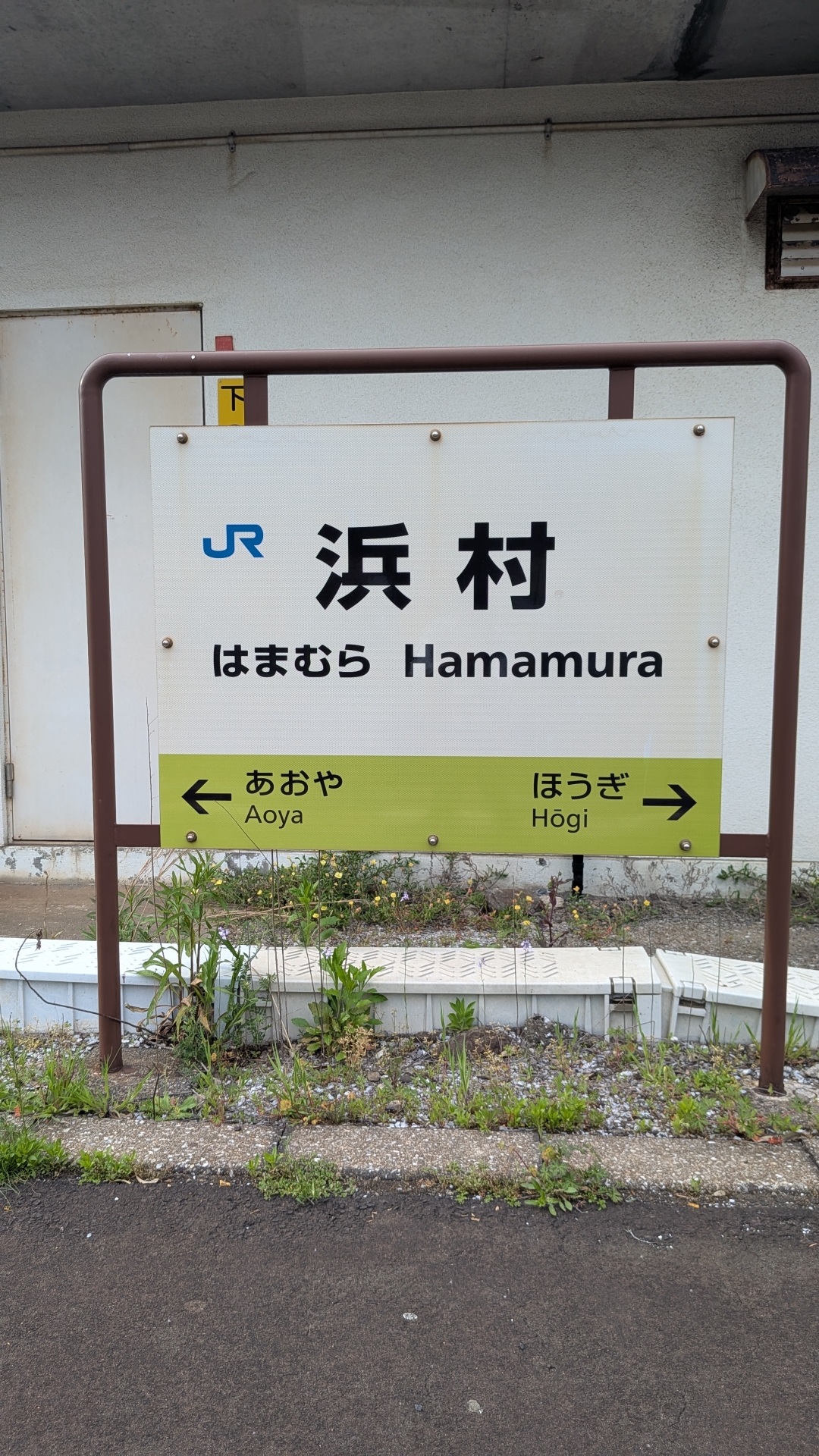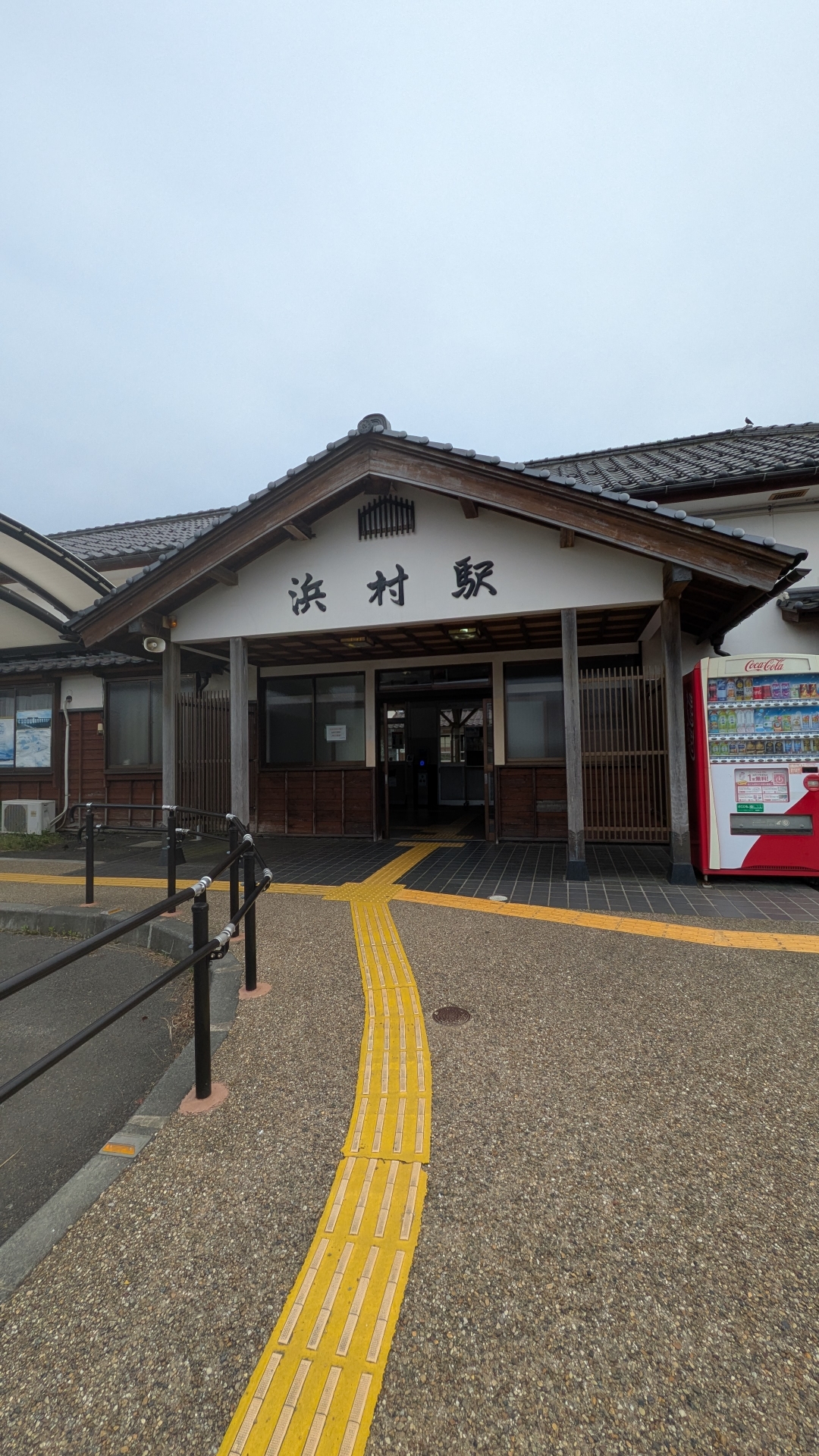 あまり利用の多くはない駅で無人駅。 浜村は温泉が人気で駅前には足湯がある。 駅舎には地元の標語や、地元の座布団?らしきものがある。 懐かしい駅舎である