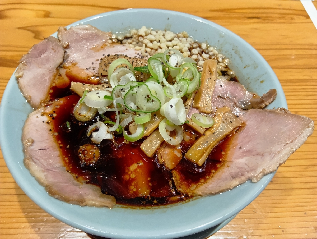 富山に来たらやっぱり富山ブラックラーメン🍜 駅弁1個食べた後なのに余裕で完食!! スープは一口だけで我慢😣