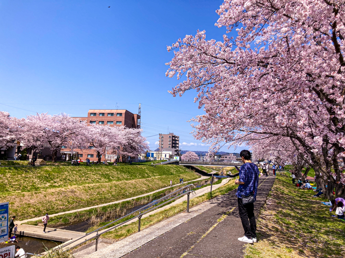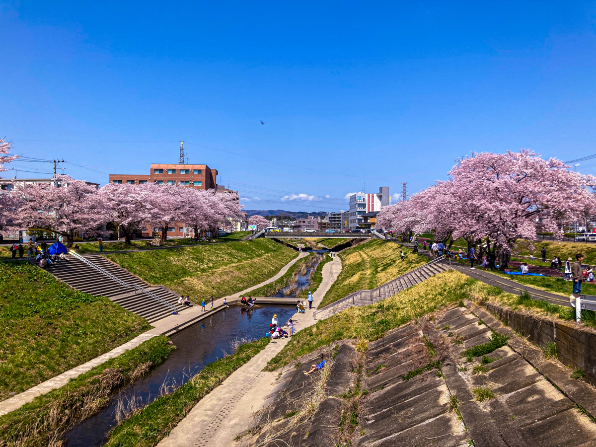 仙台市地下鉄南北線の富沢駅すぐ側にある笊川(ざるがわ)は桜の季節はお花見スポットとして家族連れで賑わっております。 レジャーシートを敷いてゆったりとした時間を是非ともお過ごしください。
