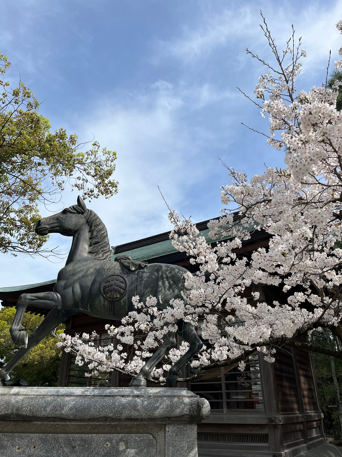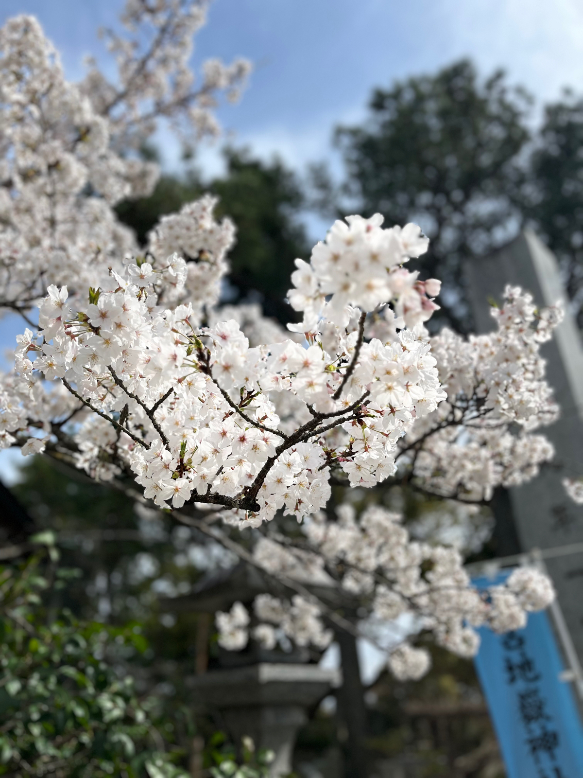 本殿に沢山の桜が咲いてとても綺麗です。