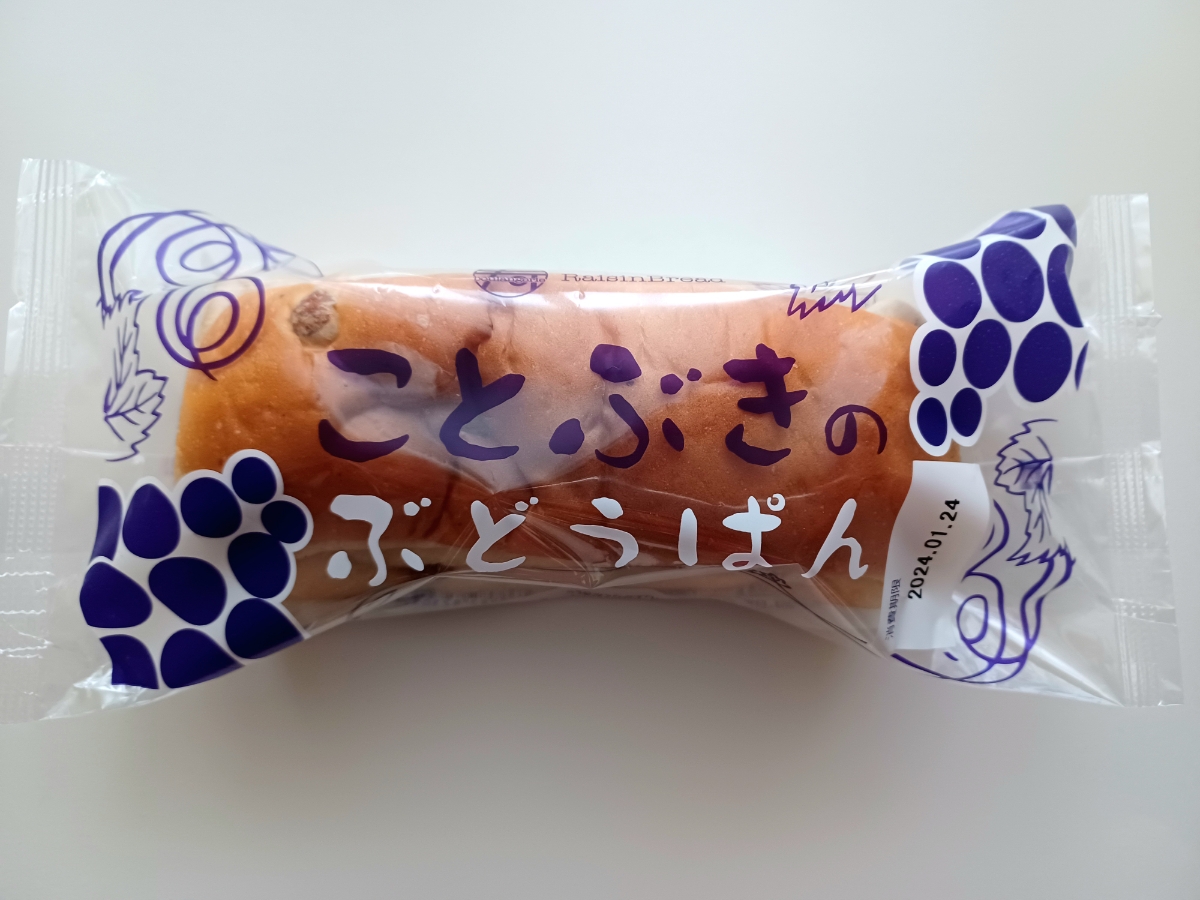 姫路のご当地パン 『ことぶきのぶどうぱん』 パンにレーズンが練り込まれ、間にはマーガリンがサンドされている素朴なパンです。 市内のスーパーにも置いてあります。