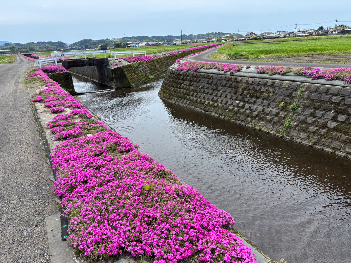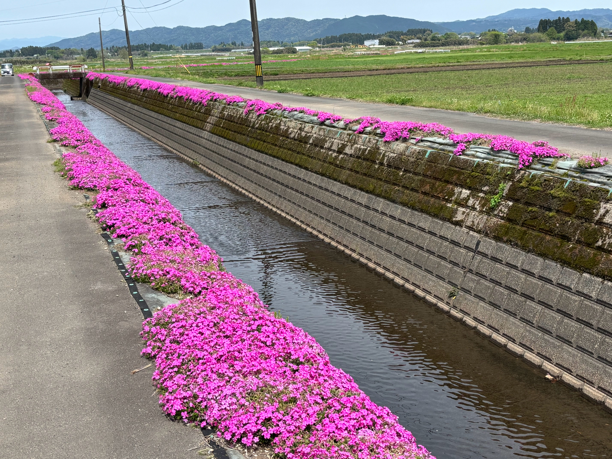 国道269号線沿いにある蓼池地区用水路沿いの芝桜が満開です🌸 蓼池地区緑保全会の会員さんが毎年植栽を続け、現在では約5.5キロにわたるそうです。
