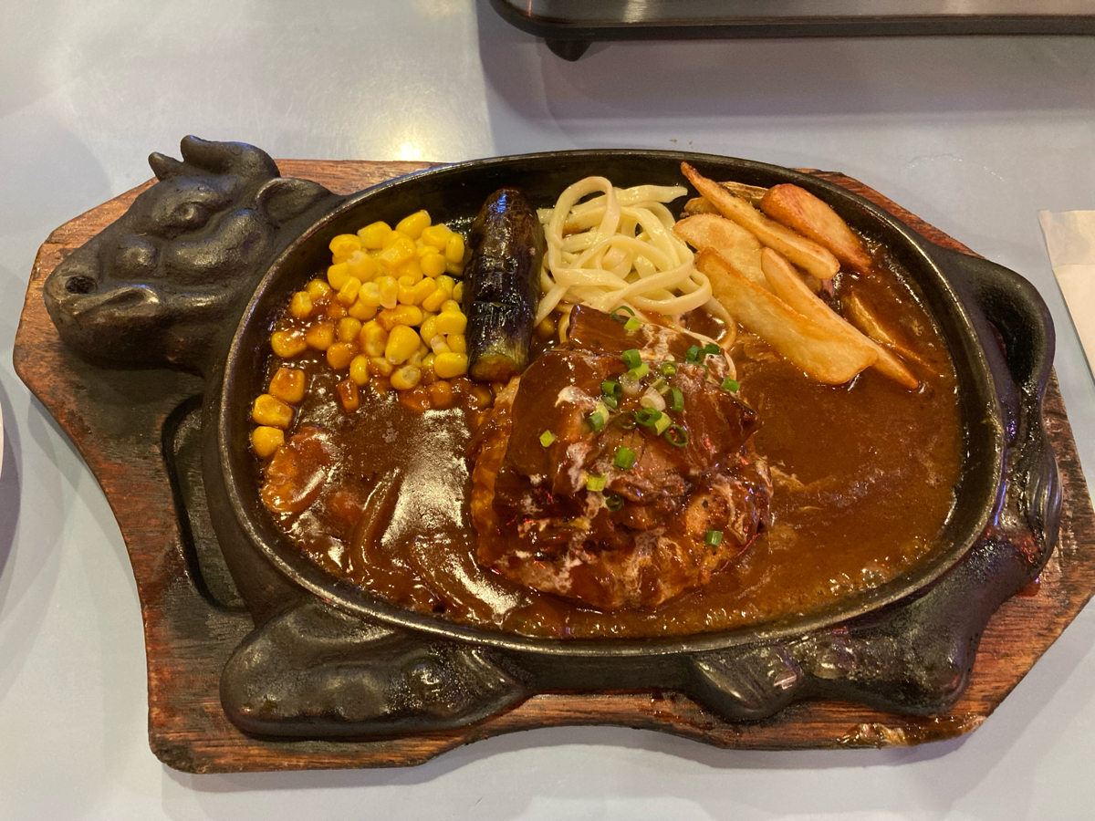 矢本駅から歩いて15分位の商店街の一角に店を構えるレストランぱらだいすさんは創業1949年という歴史のあるレストランでかつては進駐軍のビアガーデンとして営業していたそうで、その時の名残りで現在も看板メニューとして人気のハンバーグです。 牛のデザインが施された熱々の鉄板で提供されるアメリカンスタイルのハンバーグは絶品です、ハンバーグ以外にも多彩なメニューが取り揃えてあり店内はいつも混みあっています。