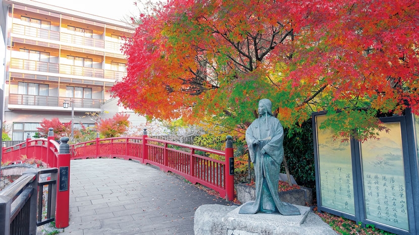 有馬川に架かる「ねね橋」のたもとでは、赤々と色付いた紅葉が訪れる人々を魅了します。 橋のそばにある太閤秀吉の正室ねねの像は、「湯けむり広場」にある太閤秀吉の像と向かい合うように建てられています。 ●交通アクセス 有馬温泉駅下車、徒歩約4分