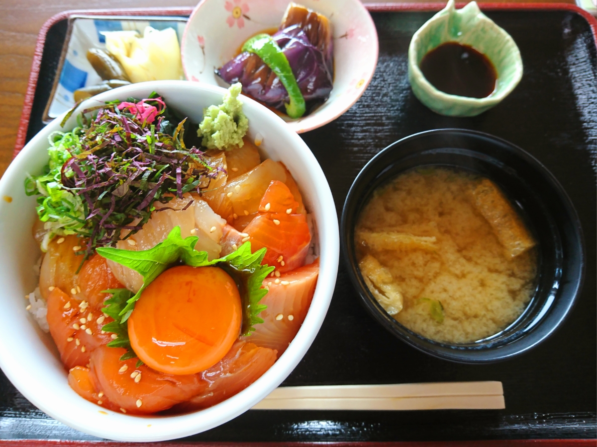 【汐風ドライブイン】 幻の魚と言われる淡水魚の"イトウ"が食べれるお店です。 お勧めは「いとひら丼」 幻の魚イトウと鰺ヶ沢産のヒラメを使った2色丼で、地元の名物を一度に食べれるのが嬉しいですね。 "イトウ“は鮭より癖がなく美味です。