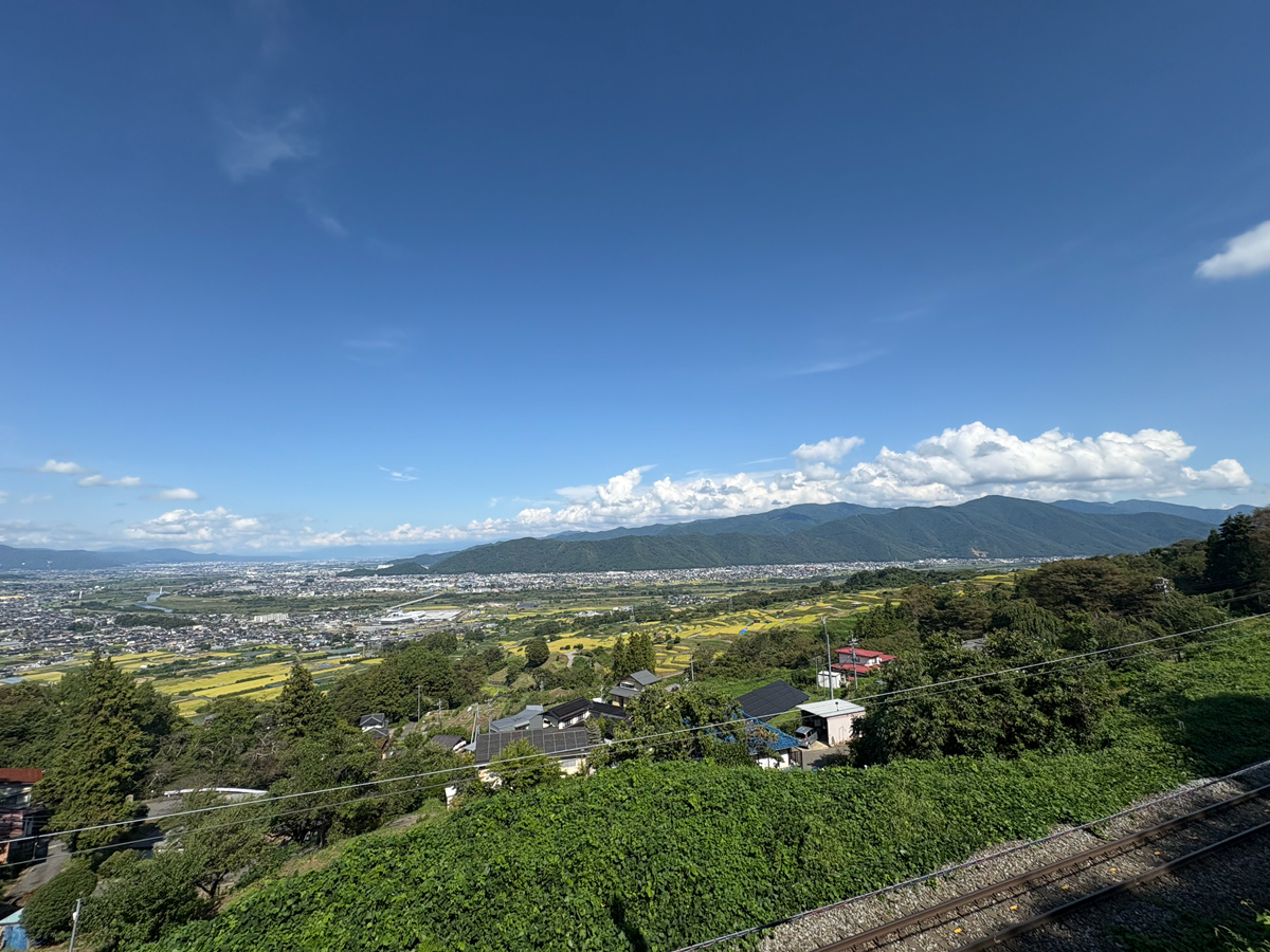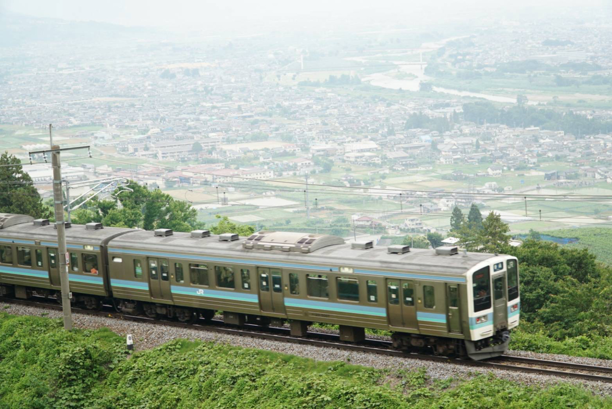 鉄道ファンなら一度は訪れたい名所姨捨。 下りは右側、上りは左側の座席から、1枚目の写真のように善光寺平を一望できる壮大な景色を眺めることができる。 また普通列車は駅にスイッチバックで入線し、対向列車を待つこともあるため、ファンでなくともその景色を楽しむことができるだろう。(上り列車の方が見やすい) 撮影地は、駅から少し長野方面へ歩いた道沿いや、駅の反対にある姨捨公園などがあり、善光寺平をバックに撮るもよし、S字カーブを駆け抜ける特急を取るのも良いだろう。