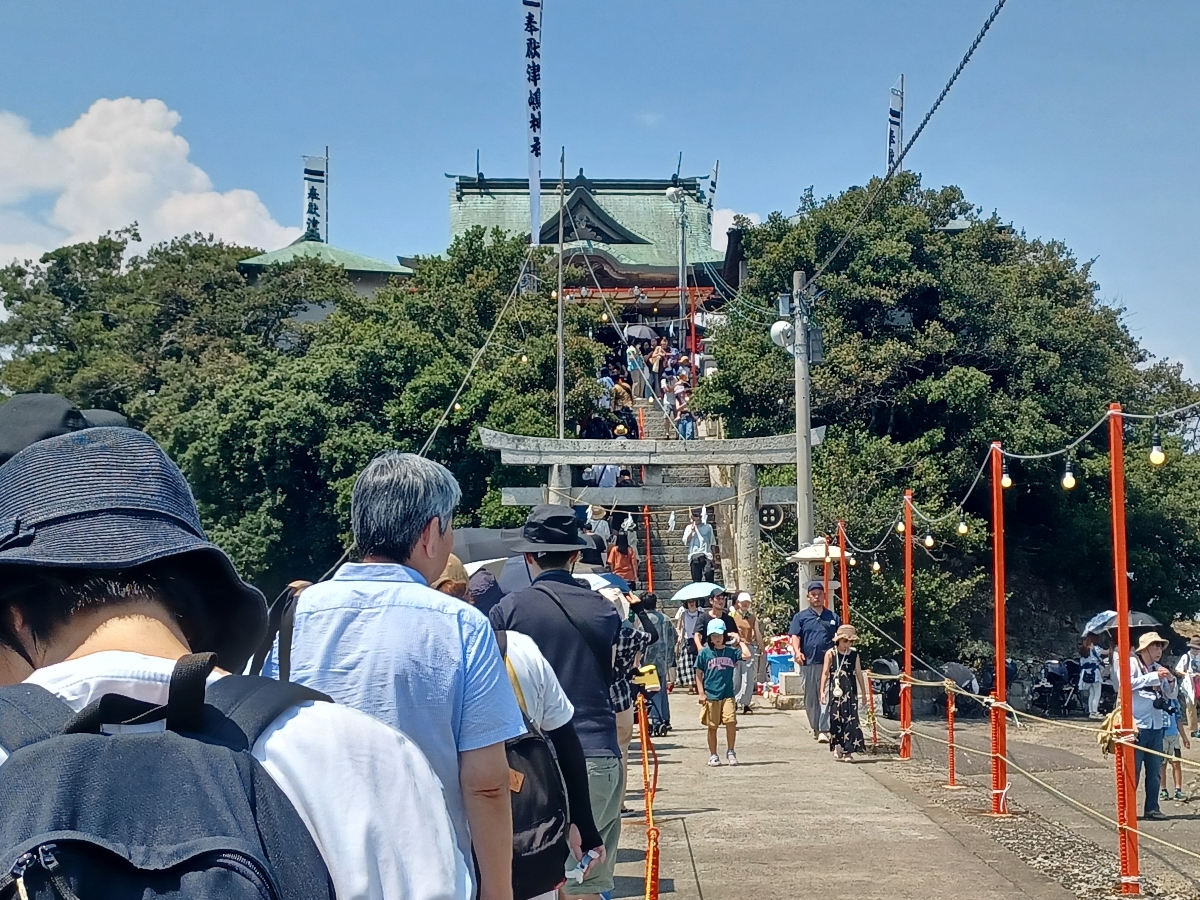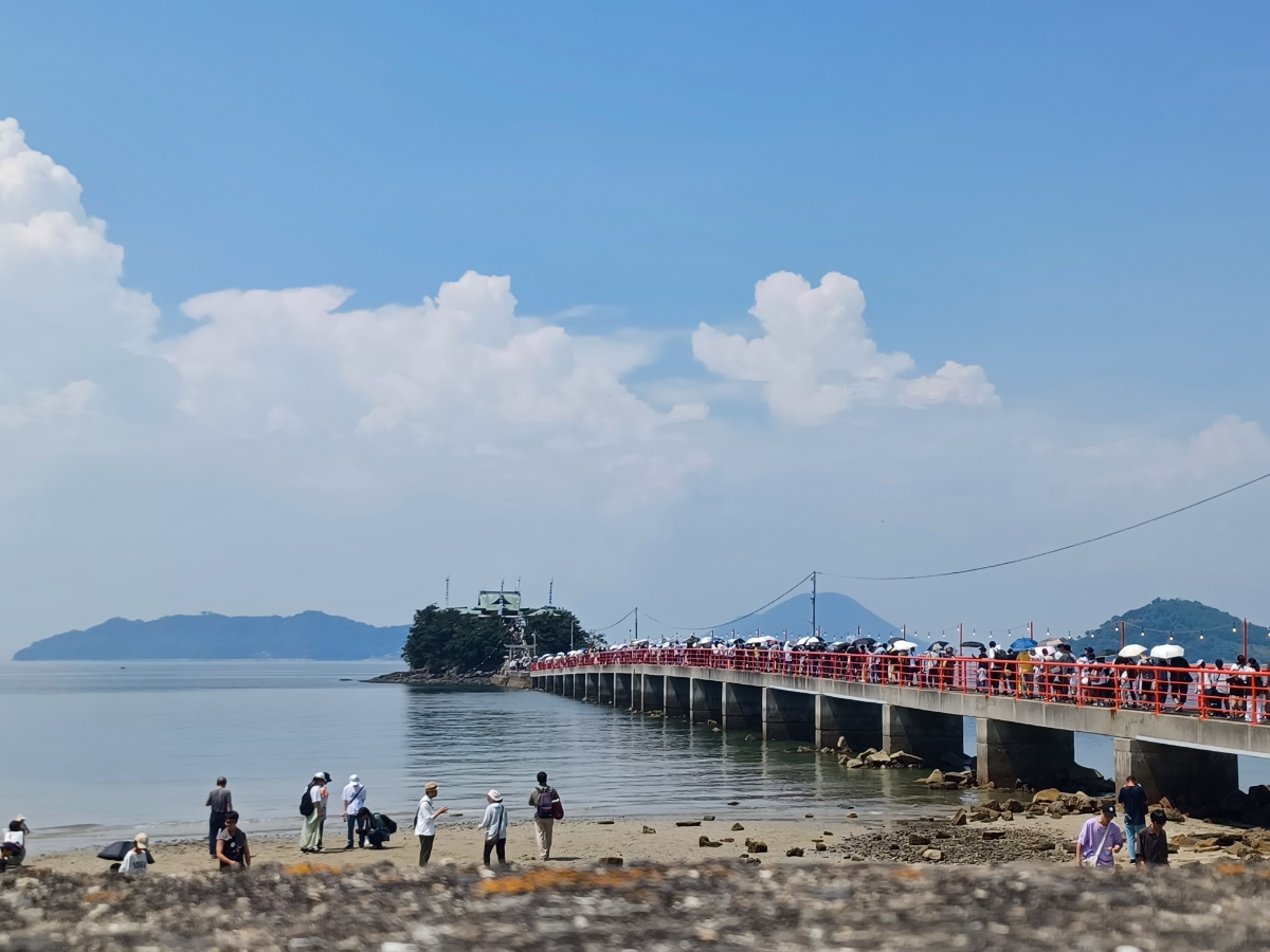『津嶋神社 (つしまじんじゃ)』 国内でも珍しい、こどもの守り神を祀る神社。 本殿がある瀬戸内海の小島“津島”へは、夏の大祭時のみ(年に二回)橋がかかり、渡ることができます。 当日は、こどもの「健康、安全、幸せ」を願う多くの人が参拝します。