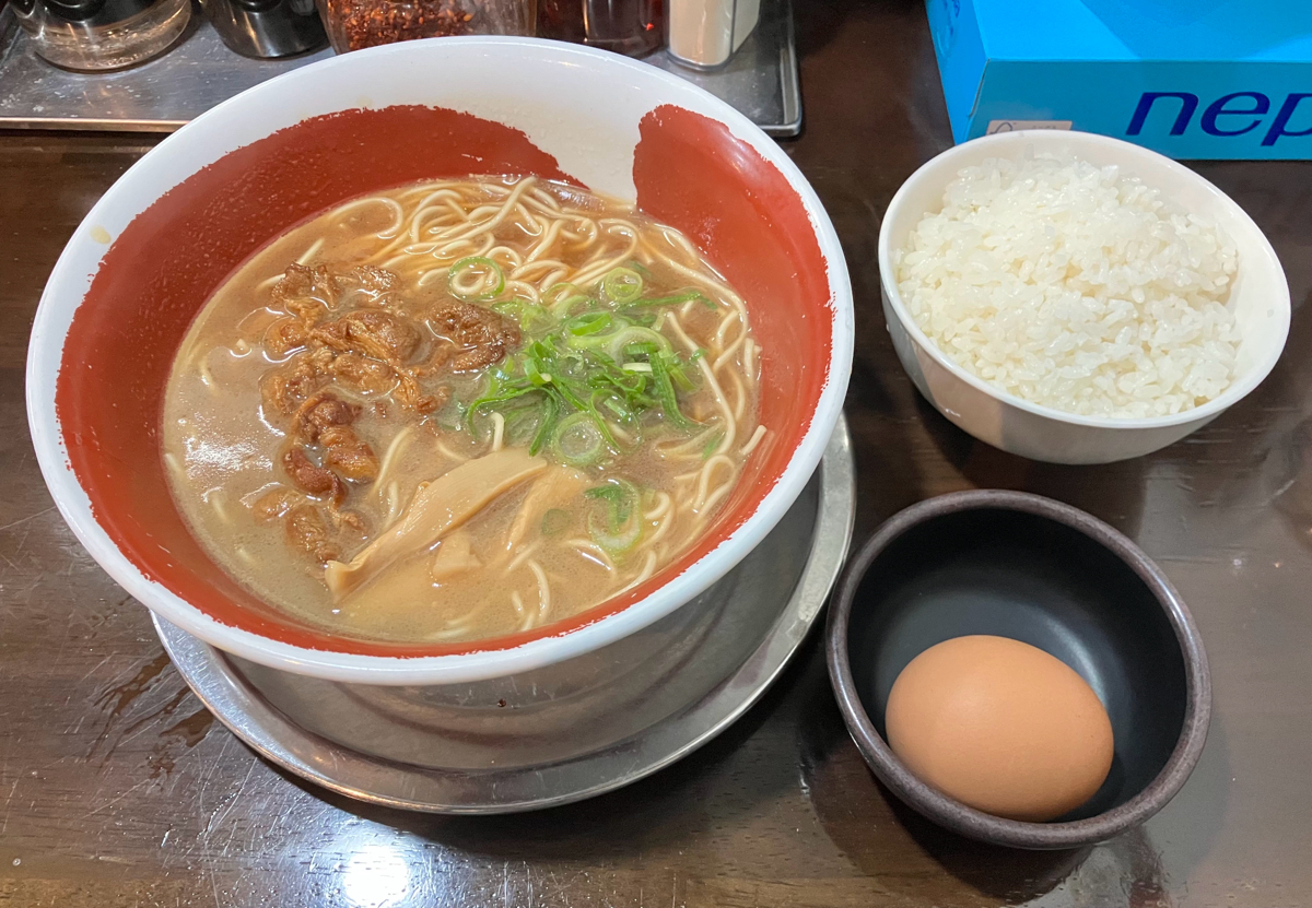 徳島ラーメンのお店です。 お昼時はお客さんがいっぱいで、いつも並んでいます。 生卵が、1人2個まで無料でいただけるので、ご飯を頼めば卵かけご飯として食べれます。