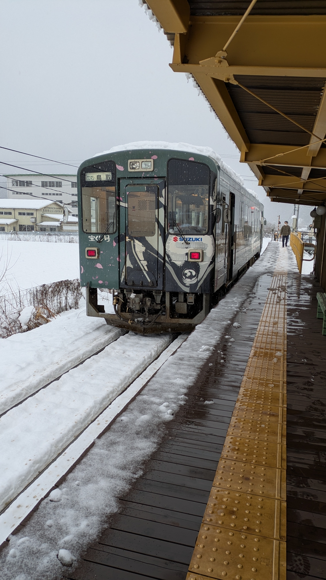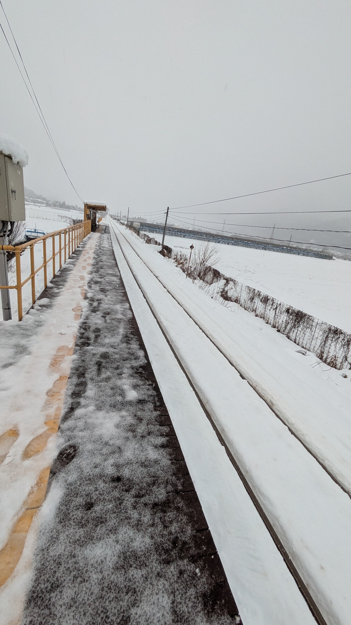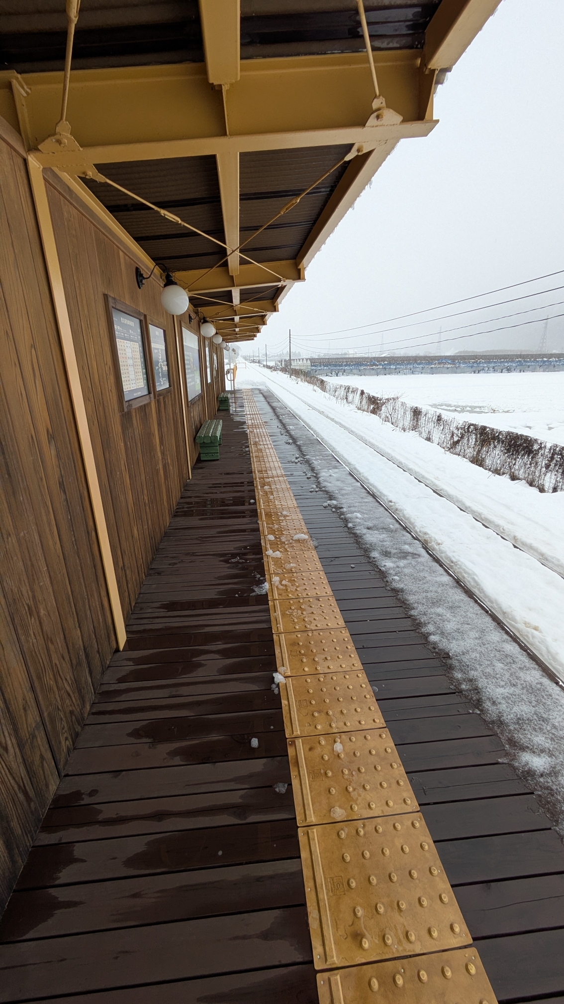 若桜線の中では、違いが大きく見える駅である。まず、駅舎がない。 私は冬に行ったのだが、雪1面にポツンとある、小さな駅。 実は秘境駅とも言われており、利用者数が少ないとか?