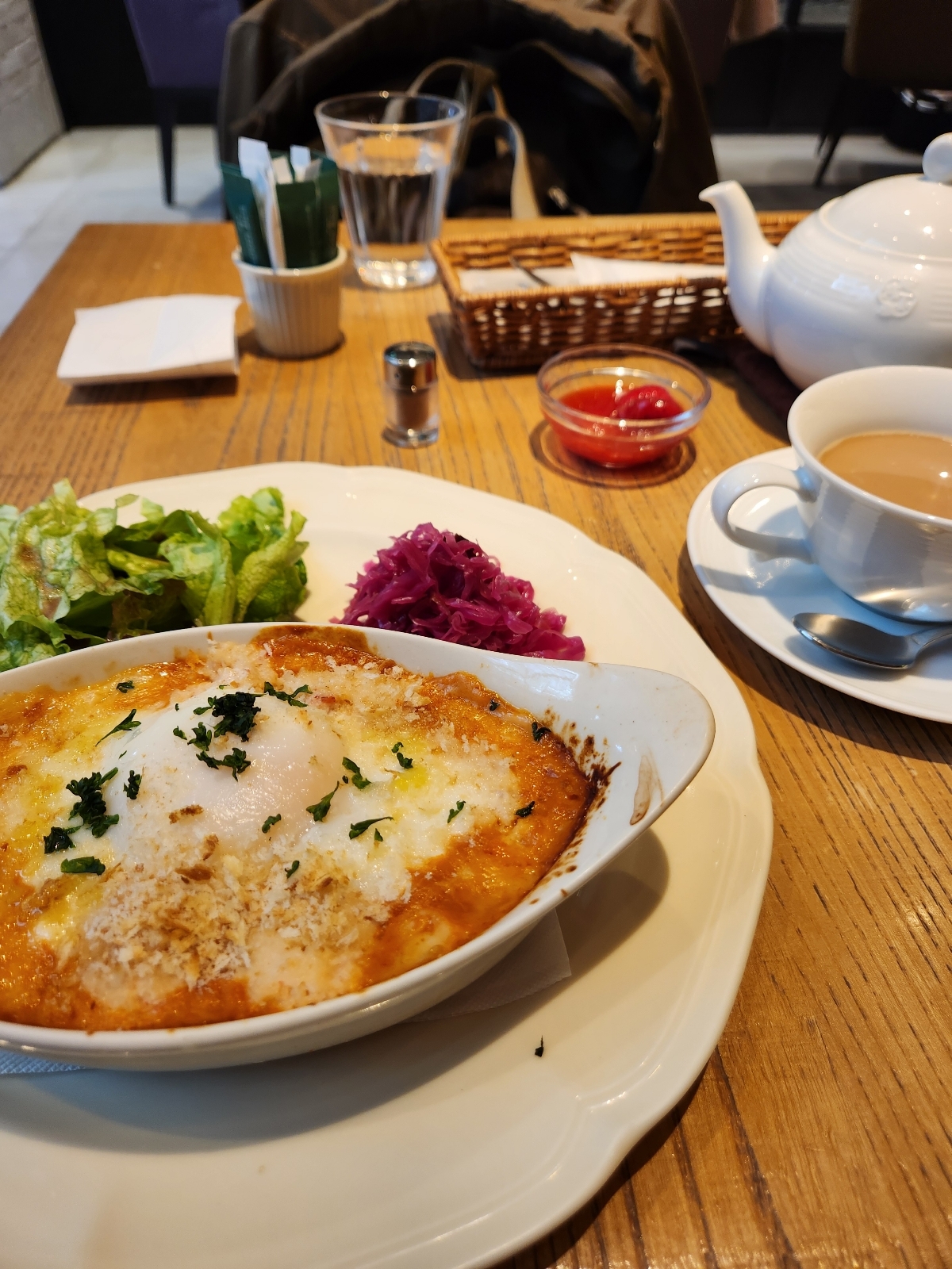 紅ずわい蟹と半熟卵のチーズドリア ストロベリーチャイ