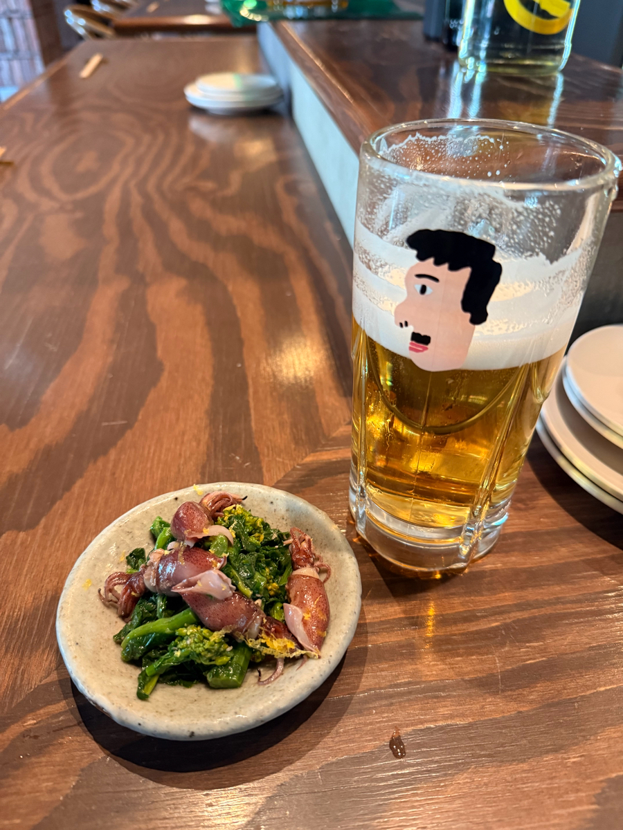 ホタルイカと菜花のマリネ、レモンがかかっていて想像以上に美味しかったです🦑